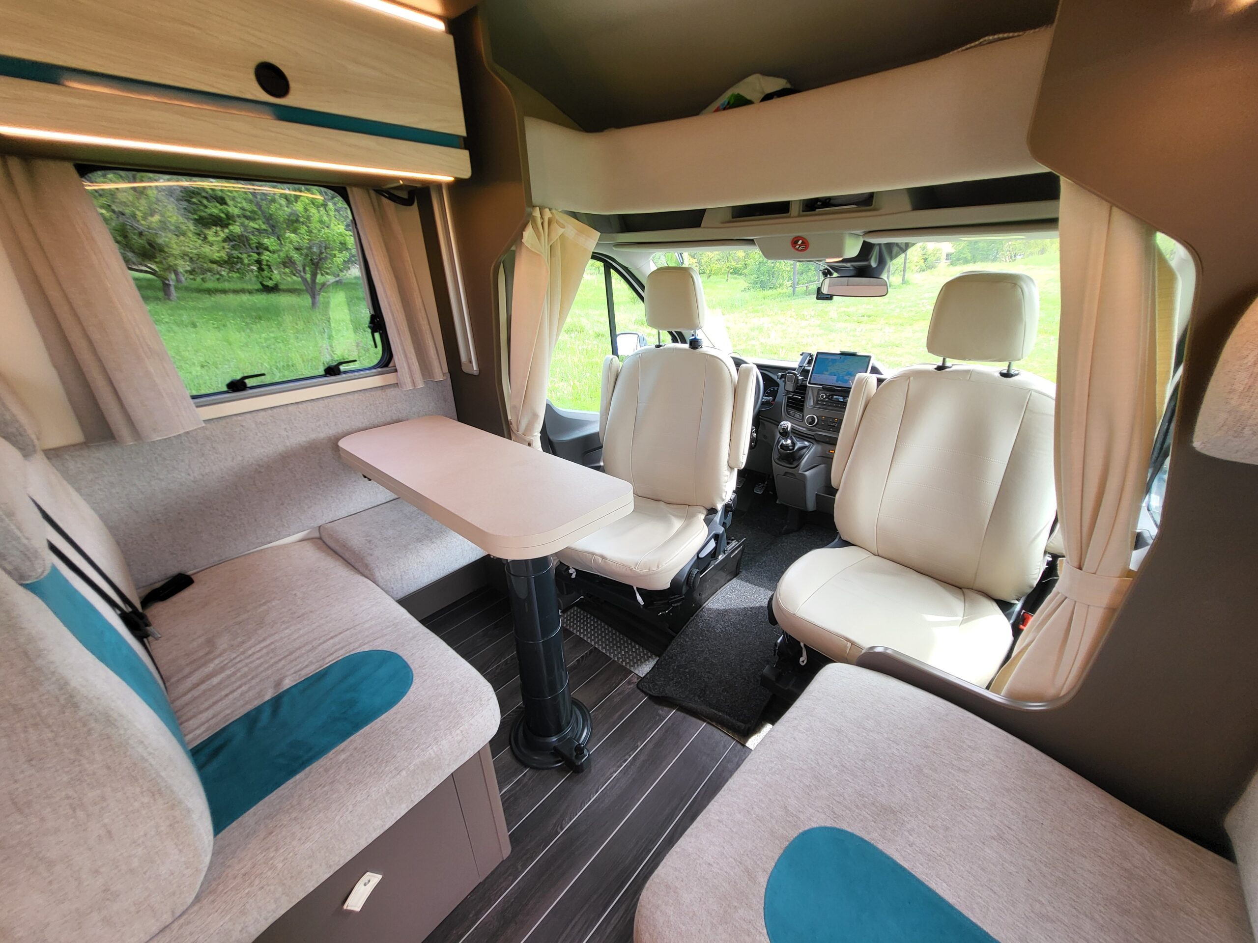 V interiéru najdete otočné sedačky v kabině, tónovaná okna s roletami a moskytiérami i prostorné postele s výsuvným roštem a elektricky spouštěné lůžko pro dvě osoby. O zábavu se postará Smart TV s Netflixem a vestavěná Wi-Fi s pokrytím po celé Evropě a Turecku.